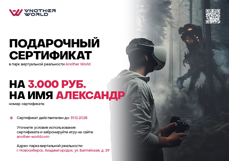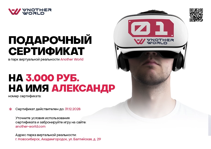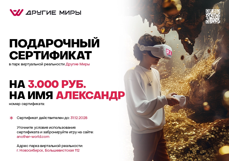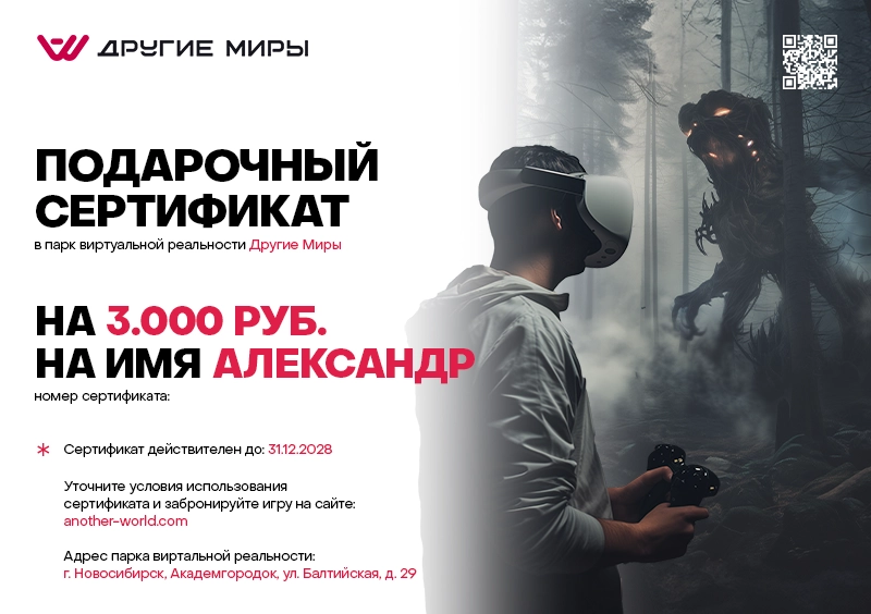 Подарочный сертификат в виртуальную реальность
